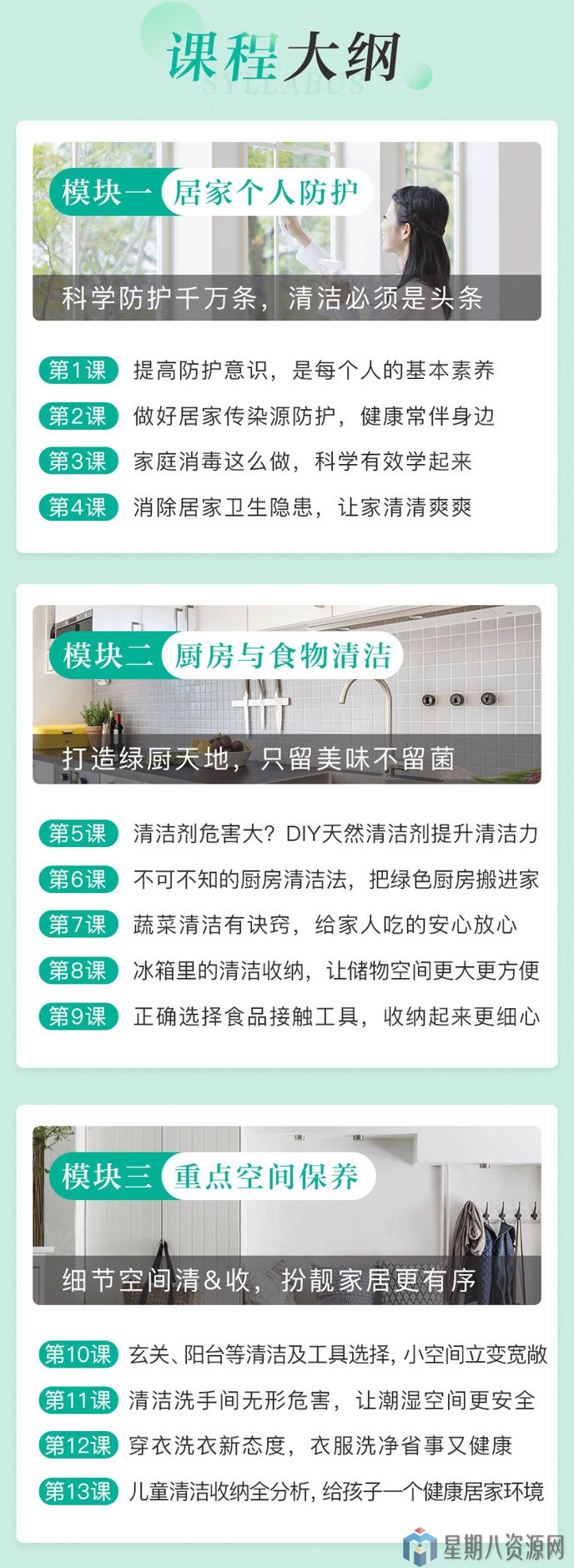 课程亮点疫情当前,个人防控、居家防护成为人人都要知道并做到的健康任务。我们专门邀请钟楚曦、杜海涛等诸多明星家的家庭健康环境指导老师,独创的居家收纳体系帮助过上千家庭的辜井老师,为大家讲授居家防护、清洁、收纳等健康内容,从个人到家人,从厨房到儿童房等全方位攻略,让全家人都能用。