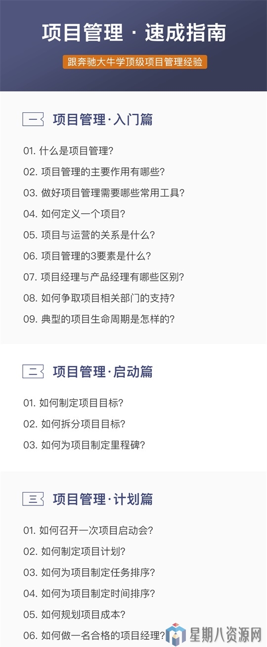 项目是工程管理的一个分支学科,指在项目活动中运用专门的知识、技能、工具和方法,使项目能够在有限资源限定条件下,实现或超过设定的需求和期望的过程。项目管理是对一些与成功地达成一系列目标相关的活动(譬如任务)的整体监测和管控。目前应用于机械、农业、工业、制造业、IT、电子,人力资源管理,餐饮,广告,职业规划,房地产,金融,考试,考试,理财,生活等方方面面……